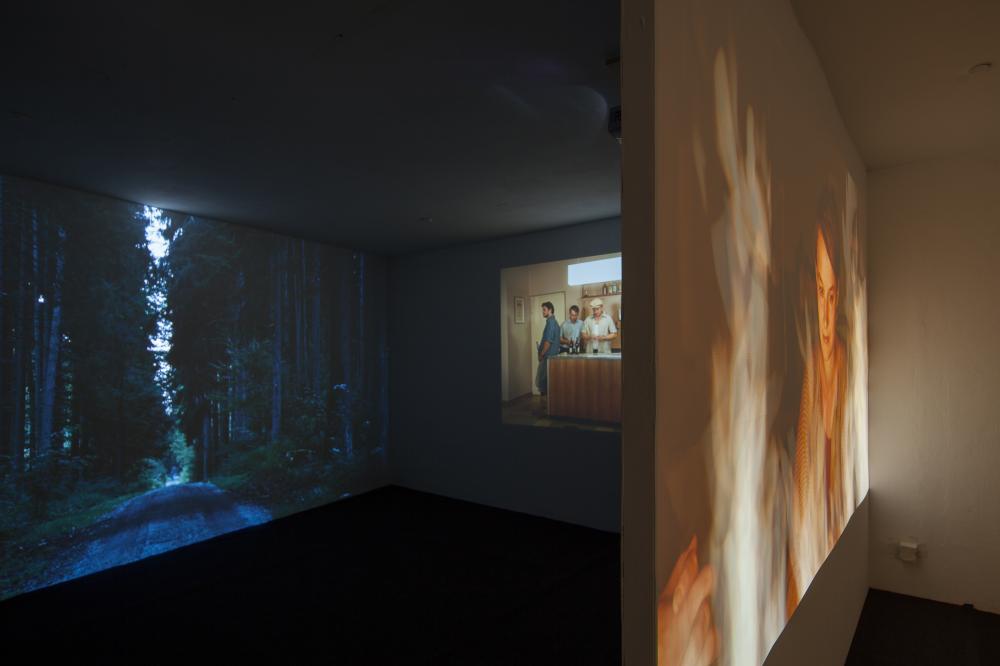 In ihrer Form der raumgreifenden Installation, wie sie Agnes Jänsch in ihrem Projekt realisiert, ist ihre Arbeit in der Tradition des »Expanded Cinema« der 60er und 70er Jahre zu verorten. Künstler wie Nam June Paik lösten den Film aus seiner Präsentation in der Einkanal-Version und schafften damit die Erweiterung in den Raum. Dabei musste sich das Expanded Cinema nicht nur neuen Fragen zu Narrationsstrategien bzw. deren Auflösung zugunsten einer Selbstreflexivität des Mediums stellen, sondern leistete auch einen fundamentalen Beitrag zum Einzug der Medien- und Filmkunst in den Kanon der Bildenden Kunst. Während allerdings das Expanded Cinema narrative und dramaturgische Spuren zu tilgen versuchte, verfolgt Jänsch eine gegenteilige Strategie. Der Betrachter soll, intuitiv geleitet, eine Narration non-linear erleben können. Verteilt auf den gesamten Raum, ohne vorgegebene Reihenfolge, wird das »Kino« hier individualisiert. Der Betrachter kann die Narration so als eine räumliche Erfahrung erleben, sich durch die Geschichte bewegen und wird dadurch selbst zum Teil der Installation.