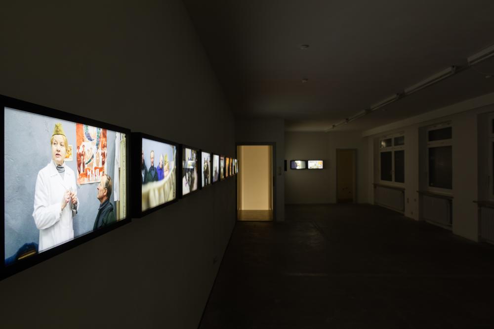 Insgesamt 24 Fotografien in Leuchtkästen evozieren ein kinematographisches Panorama, das auf den ersten Blick eine Geschichte oder vielmehr Geschichte aus vergangener Zeit erzählt. Bei der genaueren Betrachtung erfahren die Bilder, die im winterlichen Litauen entstanden sind, und Männer und Frauen in sowjetischen Uniformen sowie scheinbar Gefangene eines Lagers zeigen, einen Bruch. Zu stark scheint die uniformierte Ärztin geschminkt, zu theatral ihr Auftreten. Der Betrachter gerät in ein merkwürdiges Zwischenstadium zwischen Realität und Fiktion.